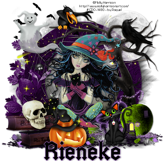 12 - RDJDdotheboo_element8 - copy and edit paste as new layer. Deplicate and merge down.13 - RDJDdotheboo_element38 - copy and edit paste as new layer. Resize 50%. Posicione em cima da teia de aranha. Com a ferramenta eraser, apague a linha preta que fica em cima.